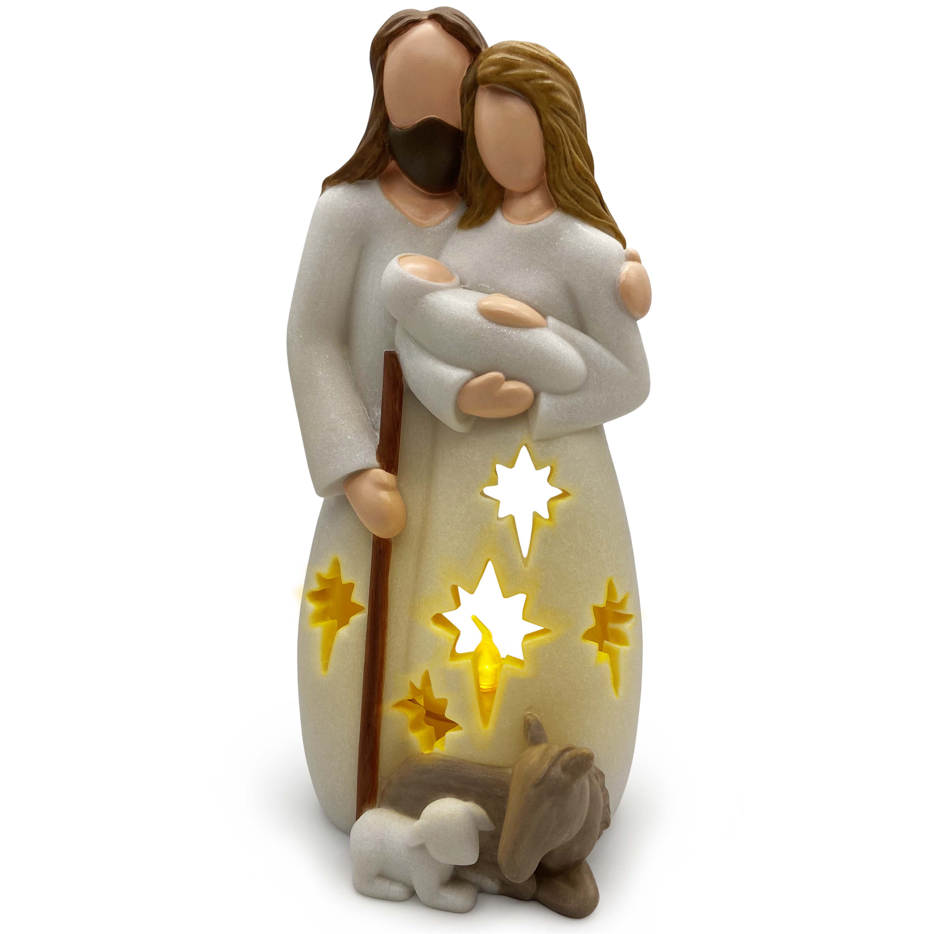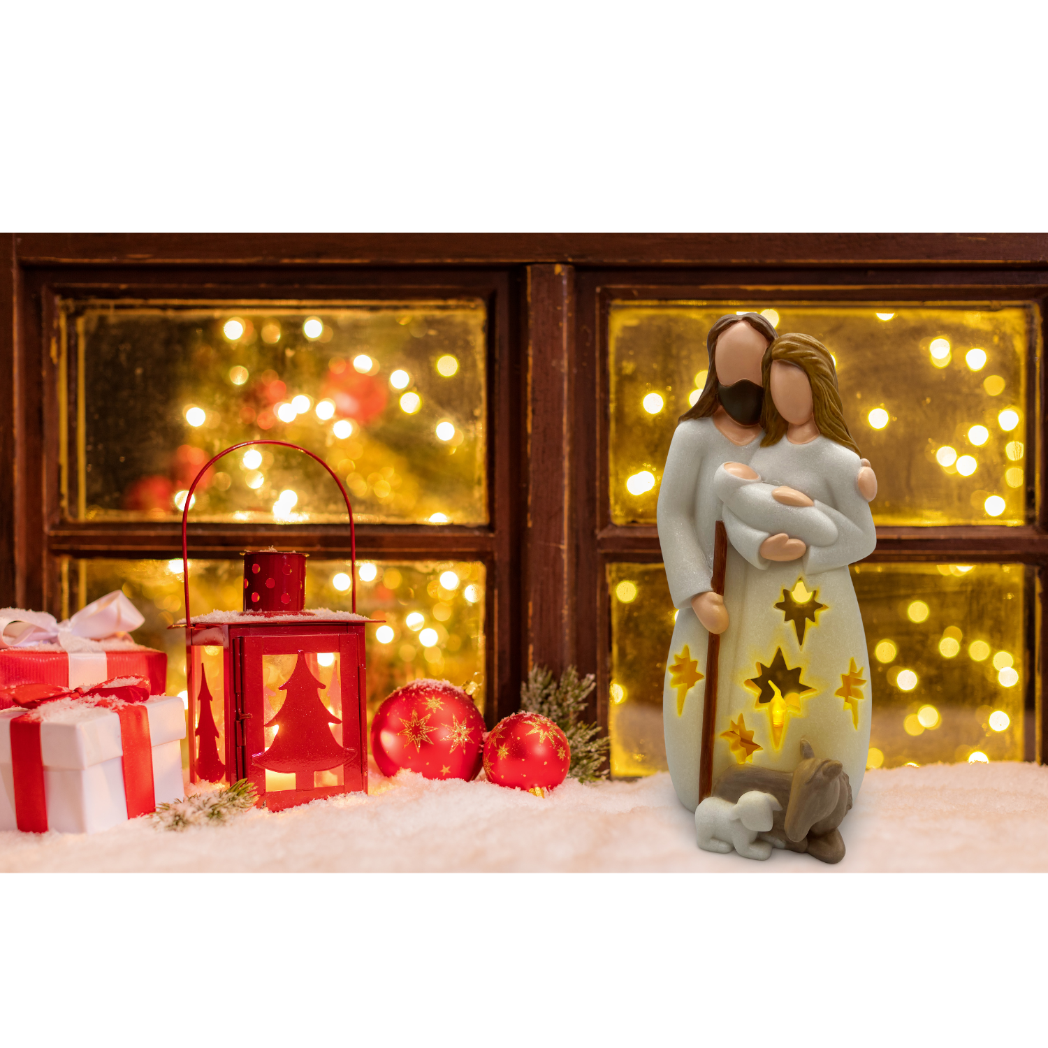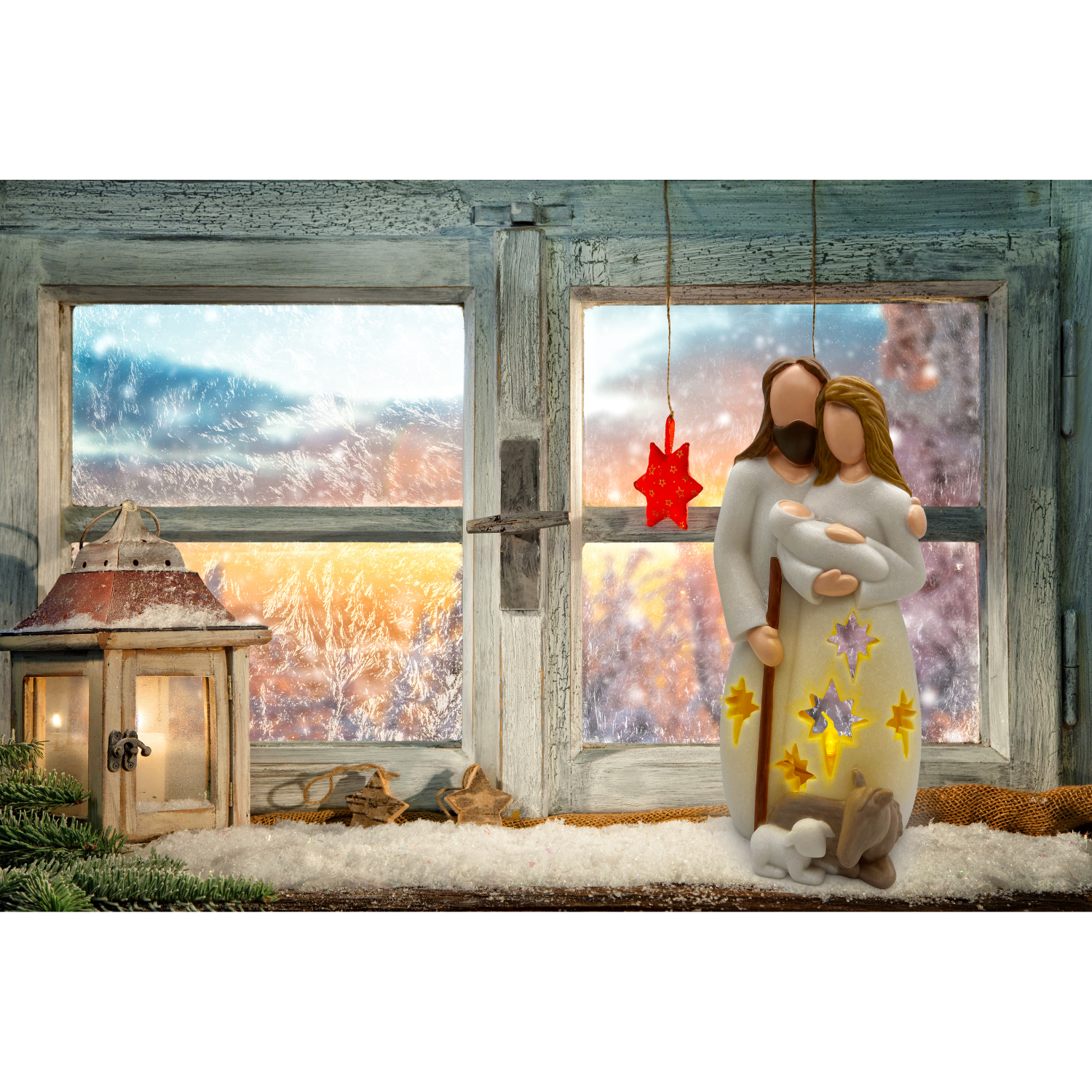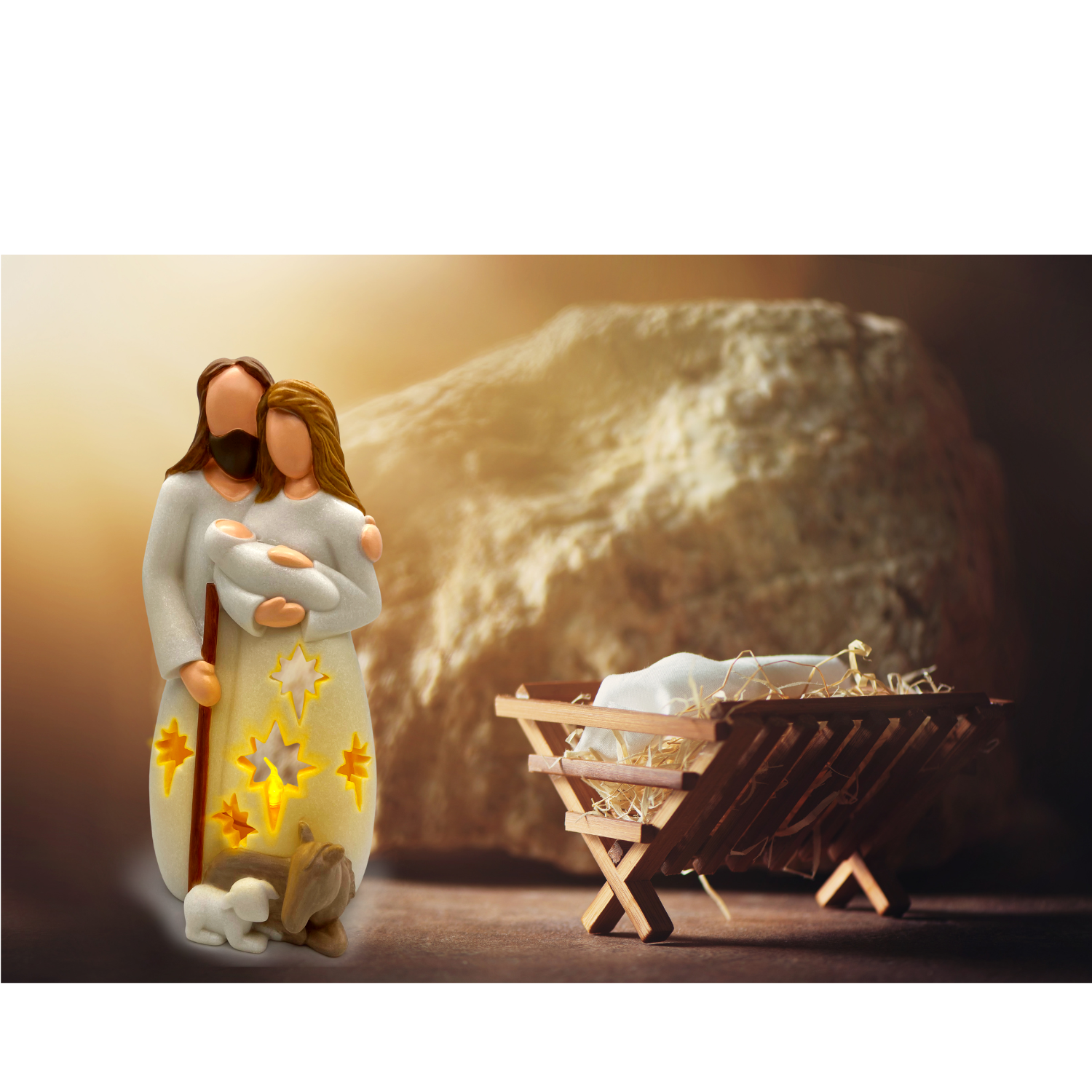- π A UNIQUE CHRISTMAS GIFT - Created with expert craftsmanship, our Christmas nativity set is made from premium, high-quality resin to deliver a strong, but subtly translucent, figurine. When used with our flickering LED candle (included), it will provide a soft warm glow through the Christmas stars on Joseph and Maria's bodies. A great addition to your window Christmas decorations, and for all year as home decor.
