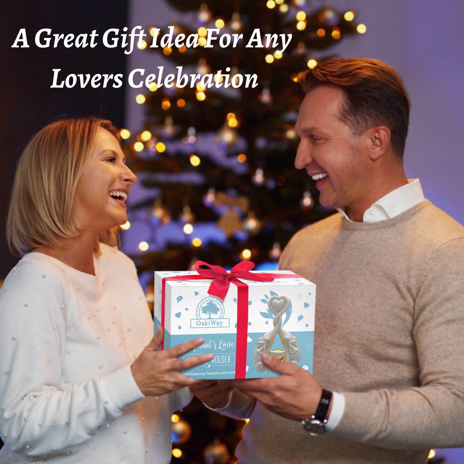 Anniversary & Couples Gifts - Elephants Love Candle Holder Statue W/ Flickering LED