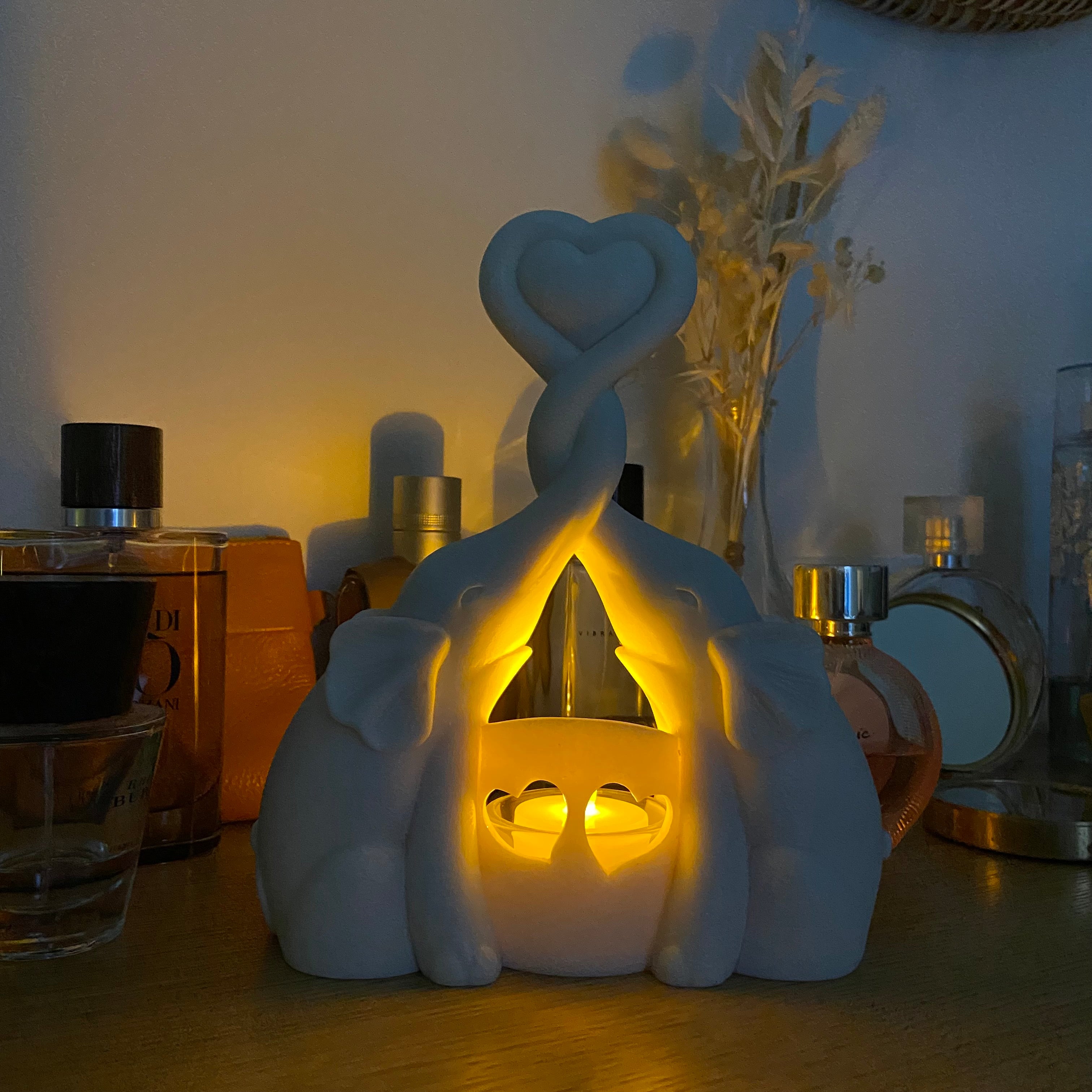 - 💕UNIQUE ELEPHANT DECORATIONS FOR HOME – This exquisite elephant figurine makes perfect gifts for couples, parents, gifts for her and for every lover's occasion. The raised trunks combine to form a heart symbolizing the love for your partner, while the flickering candle comes with it, shows the warmth you feel with him or her.