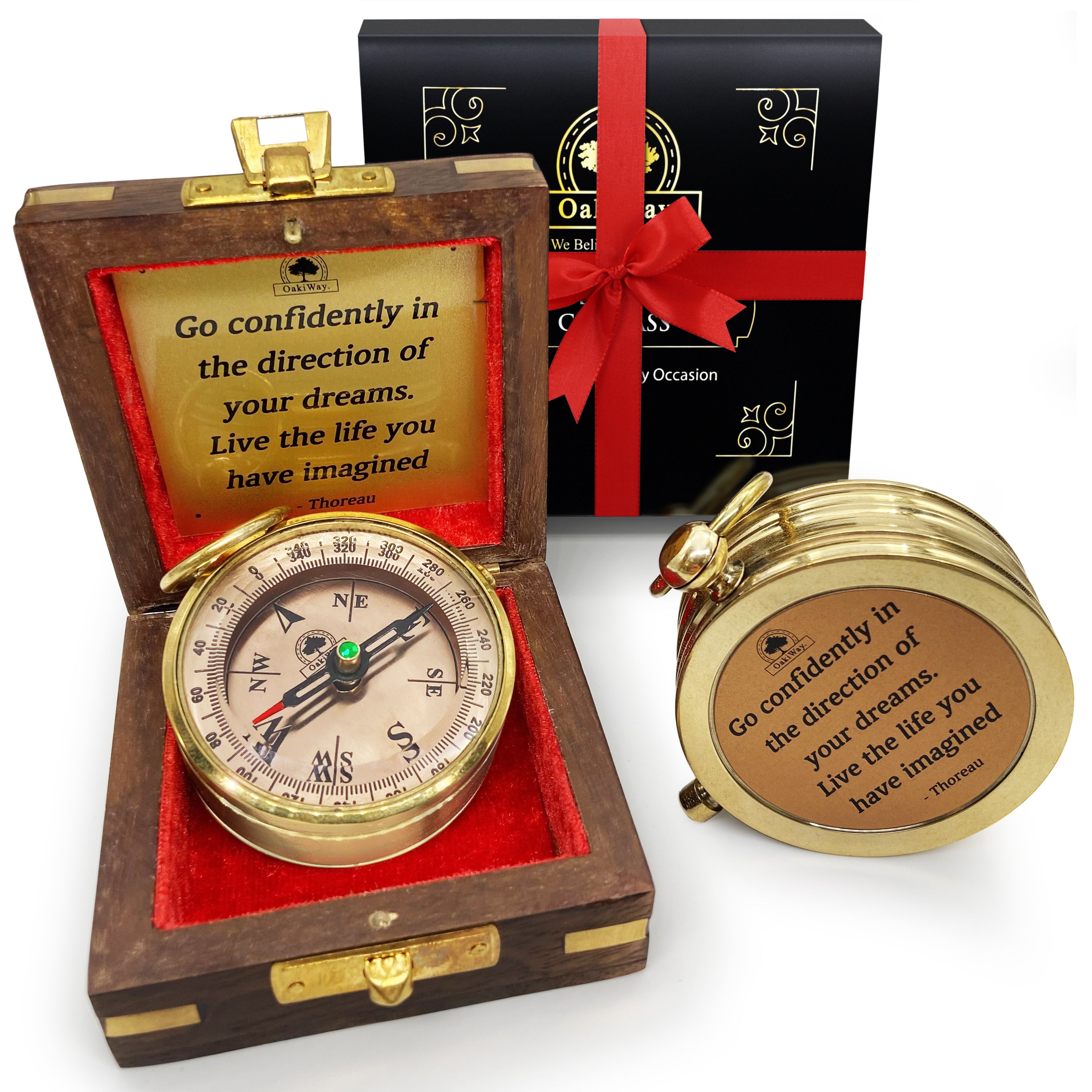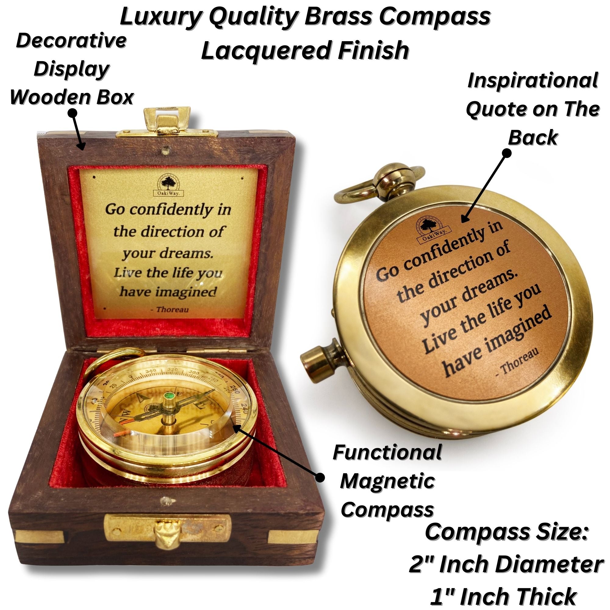 - 🎁INSPARITIONAL GIFT FOR ANYONE: We all pursue to fulfill our dreams - The Dream Chaser is the best gift to motivate and make sure not to forget our goals. This Luxury compass is made of high-quality polished brass and features the message "Go confidently in the direction of your dreams! Live the life you've imagined." by Thoreau, it comes in a beautiful decorative wooden box, It's a unique and personalized gift for anyone.