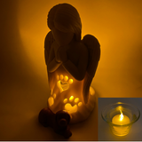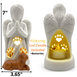 Dog's Praying Angel Candle Holder Statue w/Flickering LED Candle