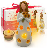 Sunflower Gifts for Women - Sunflower Girl Candle Holder W/Flickering LED Candle, Birthday Gifts for Her, Mom ,BFF, Friendship & More
