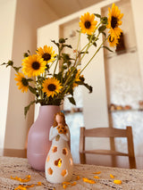 - 🌻The decorative sunflower girl candle holder is hand-painted, made of high quality environmentally friendly polished resin materials, it comes with a flickering LED candle (Batteries included) & glass votive holder, all come in attractive giftable packaging, and a nice card with a greeting on it. It is such house warming gift, any room will look brighter and more complete with the Sunflower Girl unique figurine decor.
